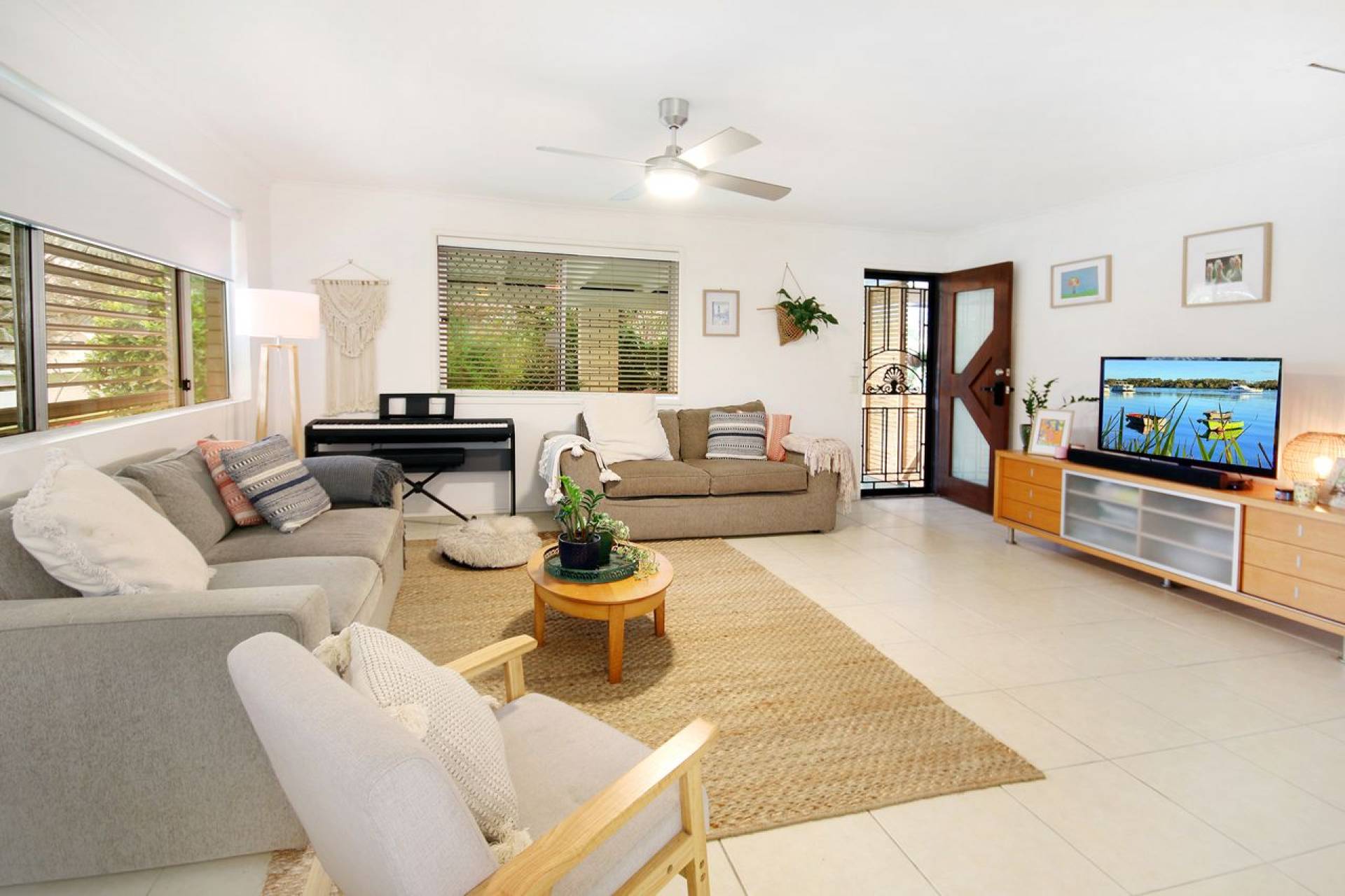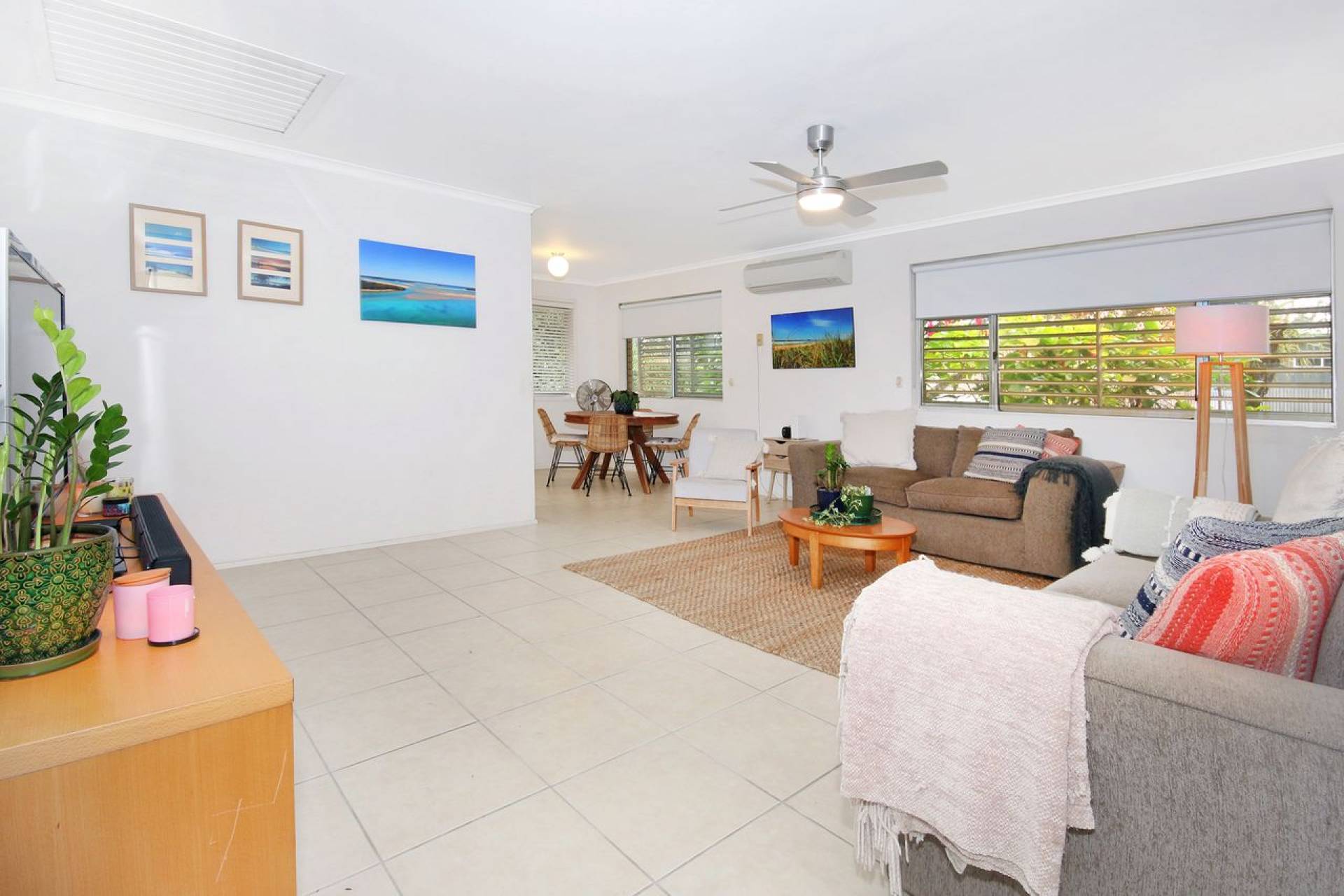 Open plan living room with split system air conditioning throughout