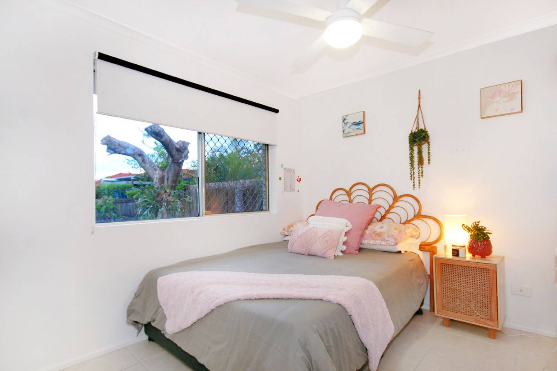 2 good sized bedrooms to sleep up to 4 guests. Ceiling fans throughout, a large completely fenced off yard, bring your dog on application, childrents can safely play in the grass yard.