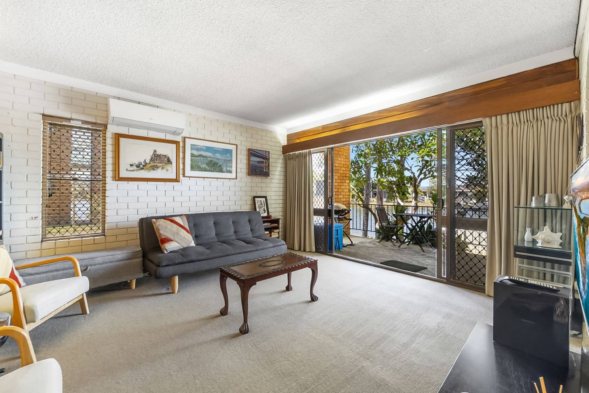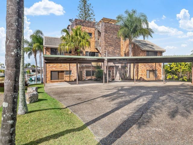 On the ground floor and looking out on the canal. There is no pontoon but you could easily bring your tinny, or just cast off from your balcony (fishing rod provided for your entertainment).