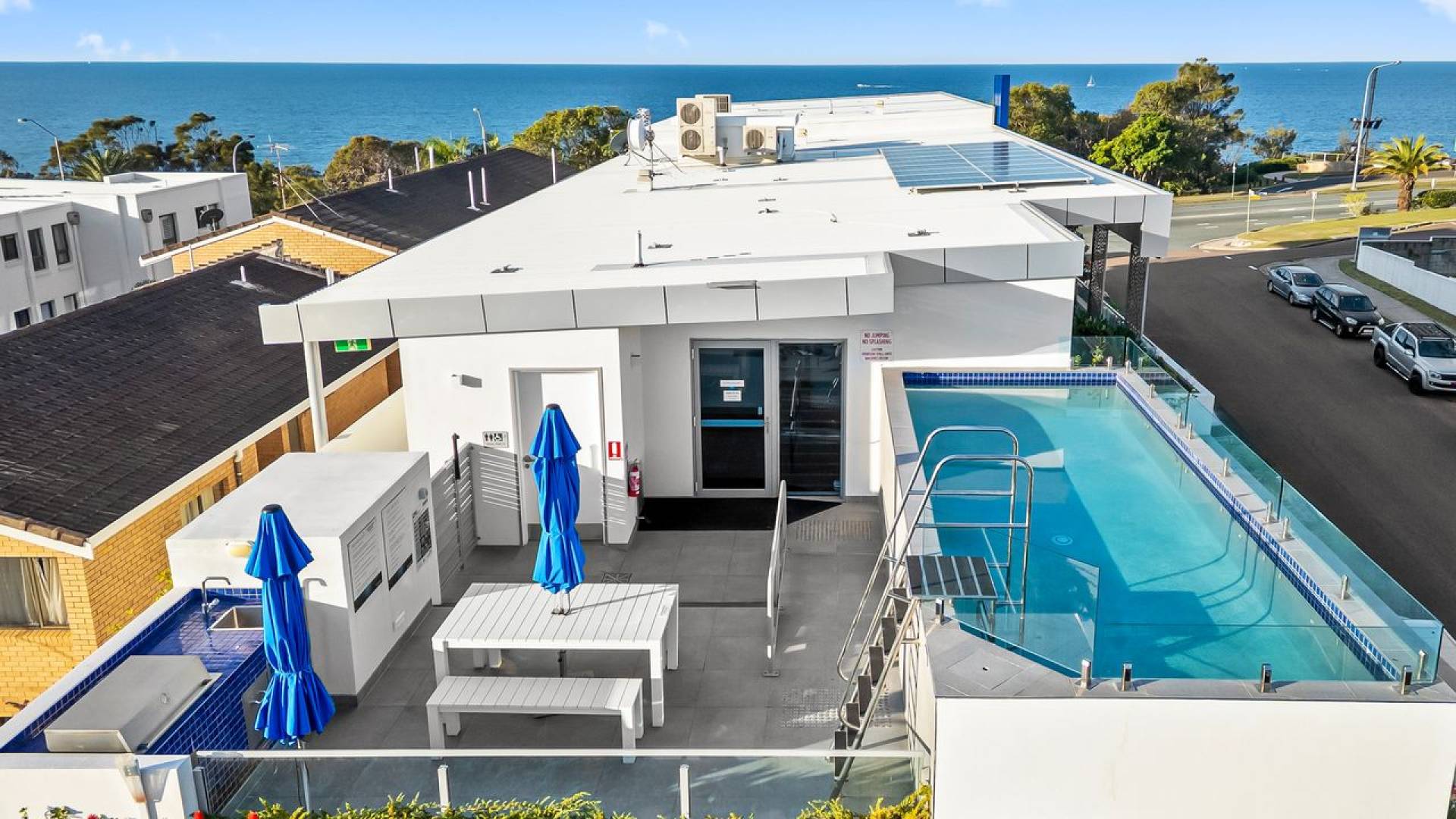 - Swimming pool, gym, steam room, roof top outdoor BBQ