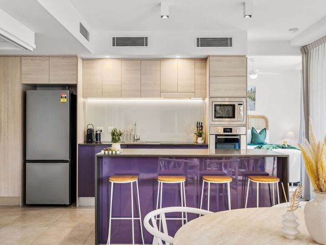 This fully equipped apartment has open-plan proportions, abundant glazing and light-filled interiors. A full-length balcony spans the entire apartment, seamlessly extending the living space and perfectly capturing the Queensland lifestyle, ocean breezes and eastern light.